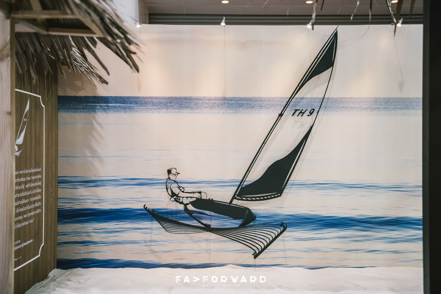 “The King of Sailing” ที่แสดงถึงพระอัจฉริยะภาพทางด้านกีฬาเรือใบของในหลวงรัชกาลที่ 9 โดยจำลองให้มีฉากหลังสีฟ้าและหาดทรายเสมือนอยู่ชายทะเล