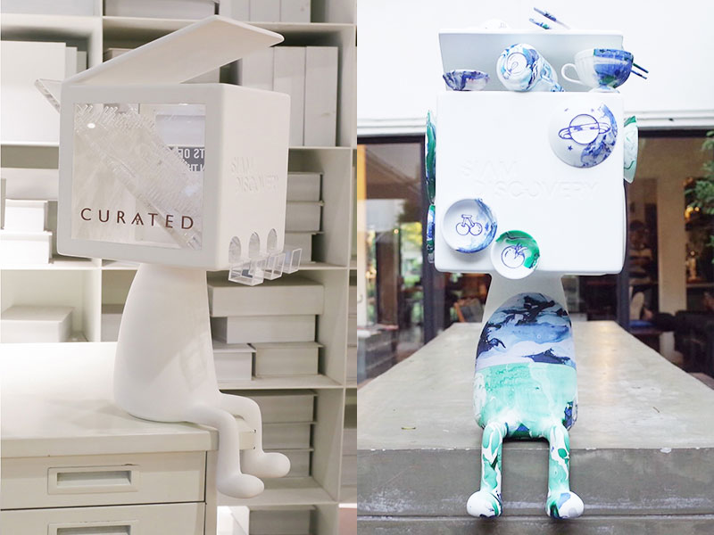 มร.โอกิ ซาโตะ ได้ให้กำเนิด ดิสคัฟเวอรี่แมน หุ่นคาแรกเตอร์ดีไซน์ ที่มีหัวเป็นรูปกล่องสี่เหลี่ยม สื่อถึงความพร้อมในการเปิดรับสิ่งใหม่ เป็นตัวแทนในการนำทุกคนเข้ามาค้นหาและทดลอง (Experiment), สร้างสรรค์ (Create) และพัฒนา (Cultivate) โดยใน Discovery Man Exhibition มร.โอกิ ซาโตะ ได้จับมือกับ 25 ศิลปินดังทั้งไทยและเอเชีย ได้แก่ ศรัณย์ เย็นปัญญา, เอก ทองประเสริฐ, ธีรนพ หวังศิลปคุณ, ปอม ชาน, อรรถพร คบคงสันติ, วสุ วิรัชศิลป์, ธีรวัฒน์ เฑียรฆประสิทธิ์, กฤษดา ภควัตสุนทร, อดิสรณ์ ตรีสิริเกษม, มะเดี่ยว – ชูเกียรติ ศักดิ์วีระกุล, Mick Saylom จาก สปป.ลาว, Goh Beng Kwang จากสิงคโปร์, Kubota Fumikazu จากญี่ปุ่น, Tiama Sirait จากอินโดนีเซีย, Piao Shan Fan จากสาธารณรัฐประชาชนจีน, PG Timbang จากบรูไน, Ilseon Ryu จากเกาหลีใต้, Peap Tarr & Lisa Mam จากกัมพูชา, Tiama Sirait จากอินโดนีเซีย, Simon Tan จากมาเลเซีย, Mon Thet จากพม่า, Florence Cinco จากฟิลิปปินส์ และ Trinh Tuan จากเวียดนาม ร่วม collaboration ออกแบบตกแต่ง ดิสคัฟเวอรี่แมน ในดีไซน์เฉพาะตัว