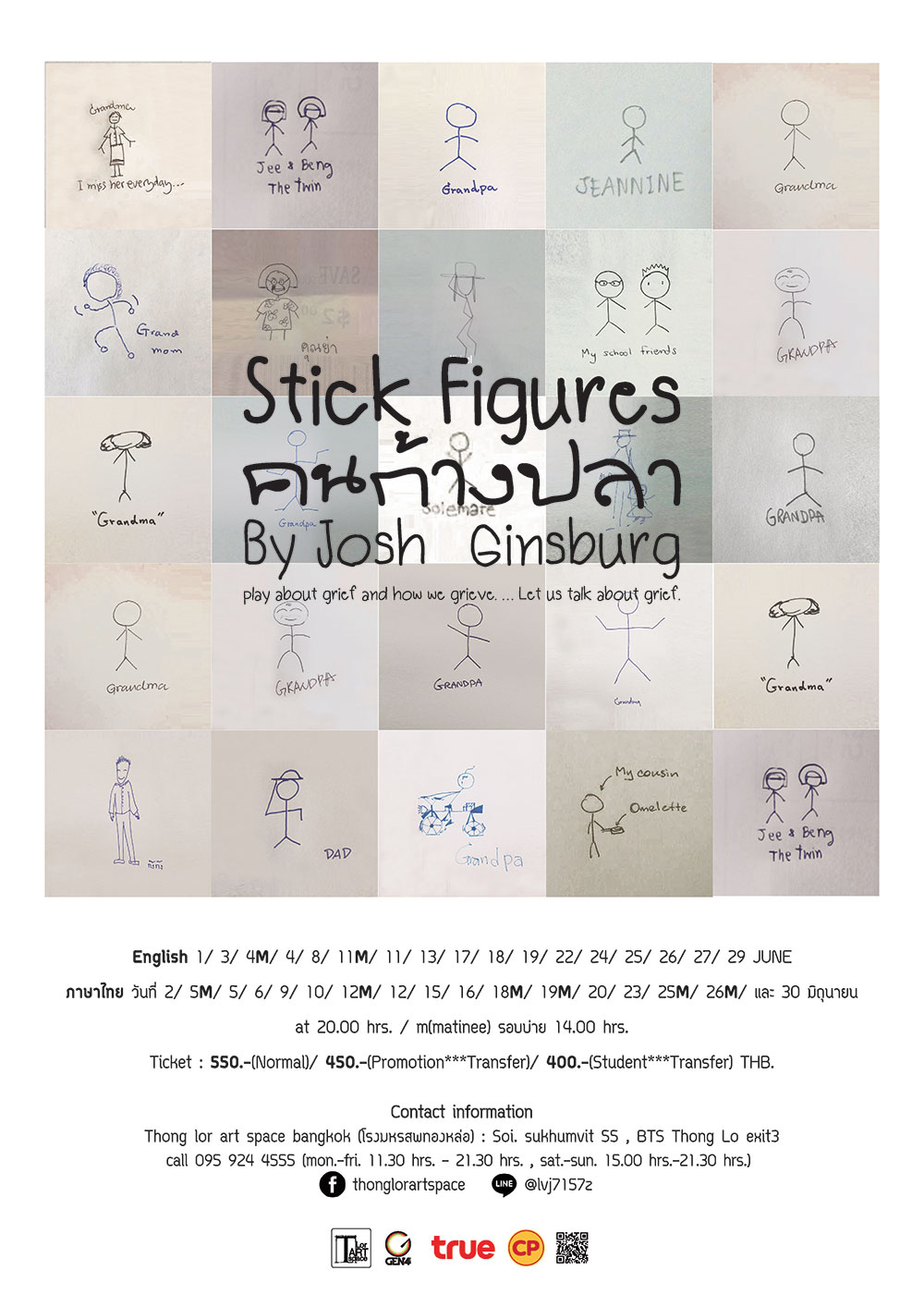 Stick Figures – คนก้างปลา เปิดแสดงที่ ทองหล่อ อาร์ต สเปช โดยมีทั้งรอบภาษาอังกฤษ และ รอบภาษาไทย สามารถคลิกดูรอบเวลาที่ภาพโปสเตอร์ หรือ https://www.facebook.com/Thonglorartspace/