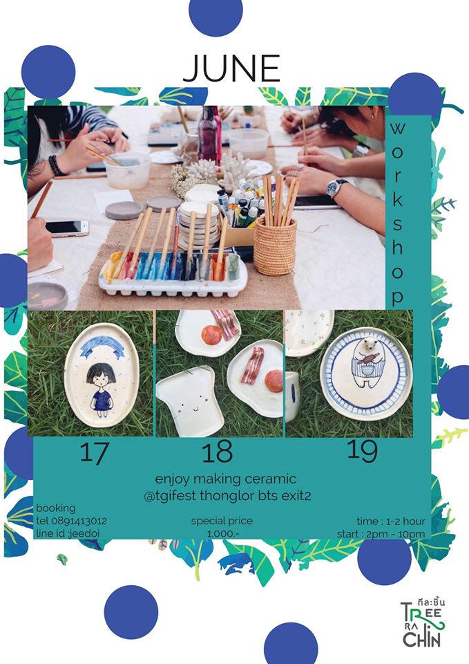หลังจากเดิน ช้อป ชิม ชิลแบบฮิปๆ ในงาน The Garden of TFEST (TGIF) แล้วมาสนุกกันต่อกับ Workshop การปั้นเซรามิกให้เป็นภาชนะใส่ของสุดน่ารัก ไม่ว่าจะเป็นจาน ชาม หรือถ้วยกาแฟ กับแบรนด์ Tree Ra Chin (ทีละชิ้น) คุณจะได้เริ่มลงมือตั้งแต่การปั้นดิน นวดดิน ขึ้นรูป จนกระทั่งสำเร็จเป็นเซรามิคใบสวยนำกลับบ้านไปได้เลยจ้า