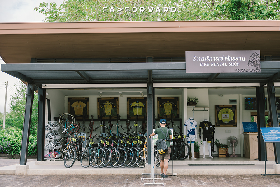 อิ่มท้องแล้ว ได้เวลาเริ่มต้นความบันเทิงกันต่อ ในที่สุดเราก็เดินทางมาถึงสิงห์ปาร์คกัน จุดหมายแรกของวันนี้ จากในตัวเมืองเชียงรายลงมาทางใต้ เราไม่ลังเลที่จะเช่าจักยานกัน เพื่อจะได้ชมดอกไม้ดอกไร่กันอย่างถึงอรรถรส การขี่จักยานไปเรื่อยๆ ในวันที่อากาศครึ้มๆสลับกับแดดออก ถือเป็นสิ่งดีเพราะมันไม่ร้อนมาก แต่กระนั้นเส้นทางที่ยาวที่สุดคือ 9 กม. อาจจะไม่ชิลนักสำหรับคนที่คิดจะมาชิลรับลมเล่น ถ้าพร้อมแล้วก็ไปปั่นด้วยกันครับ