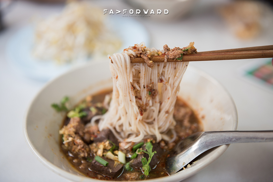พอเที่ยงความหิวก็มา พร้อมปิ๊งไอเดียจากการเสิร์ชหาเช่นเคย และปักหมุดพื้นที่มุ่งหน้าไปยังร้านน้ำเงี้ยวป้าสุข รสชาติอร่อยสมคำรำ่ลือ เรากับเพื่อนสั่งมาคนละชามแล้วเพิ่งจะมาสังเกตเห็นโต๊ะรอบข้างนั้นสั่งพิเศษกันทุกคน สุดท้ายเราทั้งสองคนก็สั่งเพิ่มอีกชาม