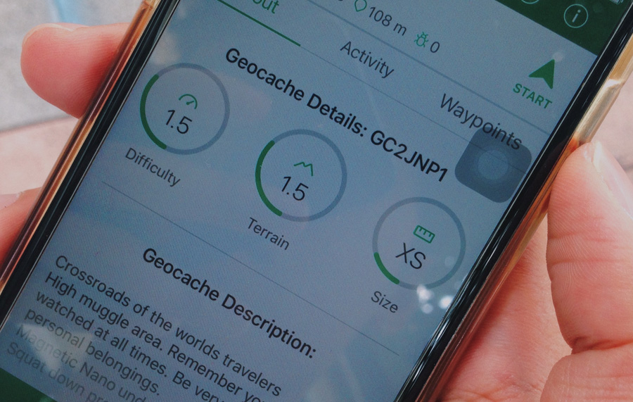 จุดเด่นของเกมGeocachingคือการลุ้นว่าเราจะเดินทางไปเจอสมบัติแต่ละชิ้นที่ซ่อนเอาไว้ได้อย่างไรผ่านGPS นำทางโดยเราสามารถเป็นทั้งคนหาและคนสร้างพิกัดที่ซ่อนสมบัติเองได้(ต้องสมัครสมาชิกแบบ Premium เพิ่มเติม) ซึ่งสมบัติแต่ละชิ้นจะมีขนาด ความยากง่ายในการหา ไม่เท่ากัน (ซึ่งรายละเอียดและคำใบ้จะมีบอกอยู่ในแอพพลิเคชั่น) โดยคนที่จะเล่นเกมนี้ได้ต้องเป็นคนที่มีความอดทนและความซื่อสัตย์ เพราะต้องอาศัยความพยายามในการค้นหาและความซื่อสัตย์ที่จะแลกของที่ระลึกเพียงแค่ชิ้นเดียวและไม่บอกที่ซ่อนของสมบัติแก่ใคร (เกมนี้จะสนุกถ้าทุกคนต้องค้นหาสมบัติด้วยตัวเอง)