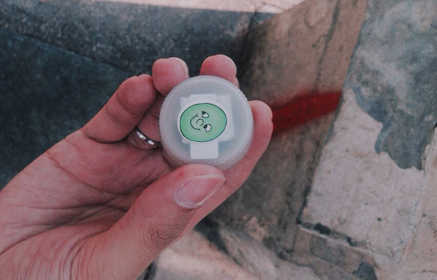 7.เนื่องจาก Cache ของเรามีขนาดเล็กจึงไม่ได้มีสมบัติข้างในให้แลกเปลี่ยน (บางกรณีใน Cache จะมีของที่ระลึกเอาไว้ให้ผู้เดินทางนำมาแลกเปลี่ยนกันหรือหย่อน Travel Bugs ลงไป) สิ่งที่ทำได้ก็คือเซ็นชื่อของเราลงบนกระดาษโน็ต เพื่อเป็นการบันทึกว่าเรามาเยือนแล้วเรียบร้อย จากนั้นนำไปซ่อนไว้ยังที่เดิมเป็นอันเสร็จสิ้น