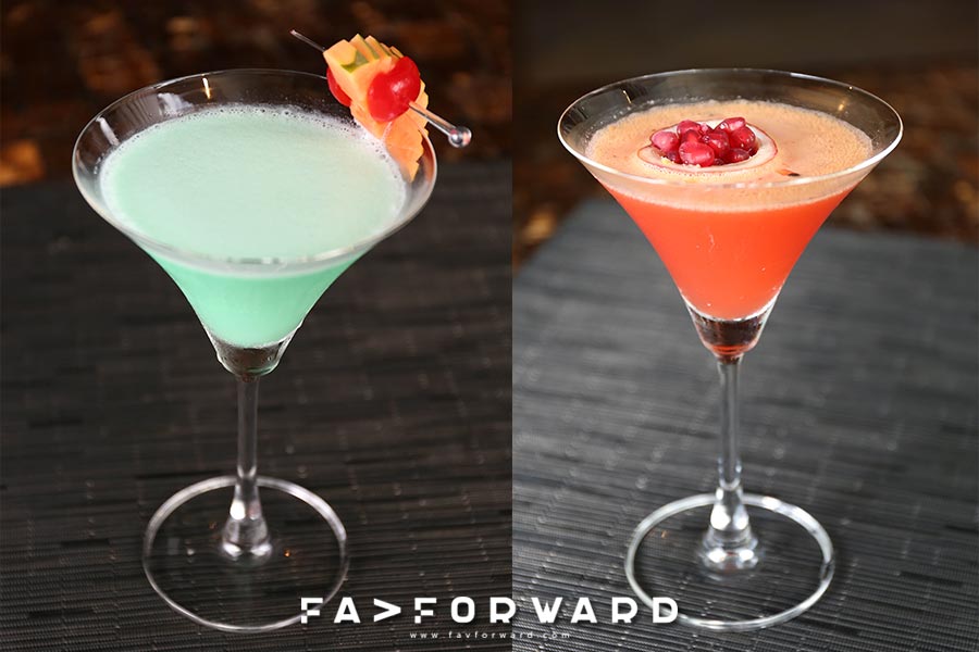 แม้จะเป็นมื้ออาหารที่แสนวิเศษและอิ่มเอมใจ แต่ด้วยความที่เราห่างหายกันไปนานหลายปี ผนวกกับวันนี้ฝนไม่ตกและมีลมพัดเย็นสบายให้คลายร้อน เลยขอนั่งกันต่ออีกสักนิดสั่งเครื่องดื่มมานั่งจิบเคล้าไปกับการสนทนาตามประสาผู้หญิงสักหน่อย แก้วแรกเป็น Grasshopper ค็อกเทลสีเขียวนมเหมาะสำหรับใครที่ชอบรสมิ้นท์ ดื่มแล้วเย็นนิดๆ สบายๆ เจือกลิ่นอายแอลกอฮอล์เบาๆเพิ่มอรรถรส แก้วถัดมา Aphrodisia มาในโทนสีสวยพอๆ กับชื่อ รสชาติก็ถูกปากเหมาะกับการดื่มหลังจากทานมื้ออาหารเสร็จ เธอดั่งนางเทพีคนพิเศษที่เป็นซิกเนเจอร์ของที่นี่ ให้สัมผัสหวานละมุนมีวอสก้าเป็นส่วนผสมกับให้กลิ่นเสาวรสนำนิดๆ ประดับประดาด้วยทับทิมเป็นไฮไลท์