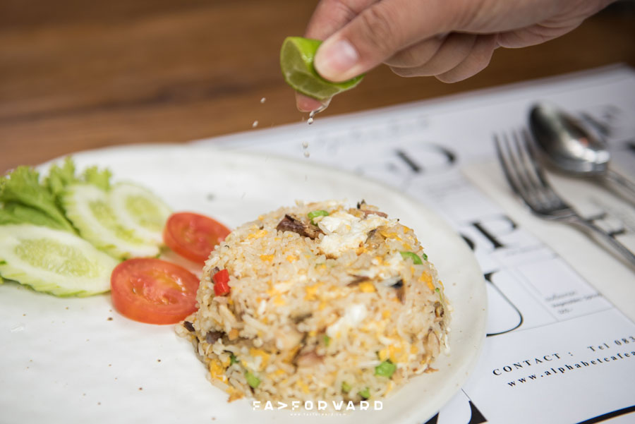 ใครที่ชื่บชอบทานข้าวแนะนำให้ลิ้มลอง ข้าวผัดปลาทู (140 บาท) อาหารไทยที่ใครหลายคนต้องยกนิ้วให้กับความอร่อย โดยเฉพาะปลาทูที่ให้รสเค็มนิดๆ แต่ไม่คาว ส่วนข้าวที่เสิร์ฟก็ผัดได้อย่างพอเหมาะ ไม่แห้งและไม่แฉะจนเกินไป สำหรับเมนูนี้คุณบีเล่าให้ฟังว่าเป็นเมนูที่มาจากคาเร็กเตอร์ของคุณเอ ซึ่งคุณเอจะมีบุคลิกแบบ Businessman เขาจึงทำงานไวและชอบทานอาหารจานเดียวแบบไวๆ แต่รสชาติอร่อย จนกลายมาเป็นเมนูข้าวผัดปลาทูทจานอร่อยจานนี้