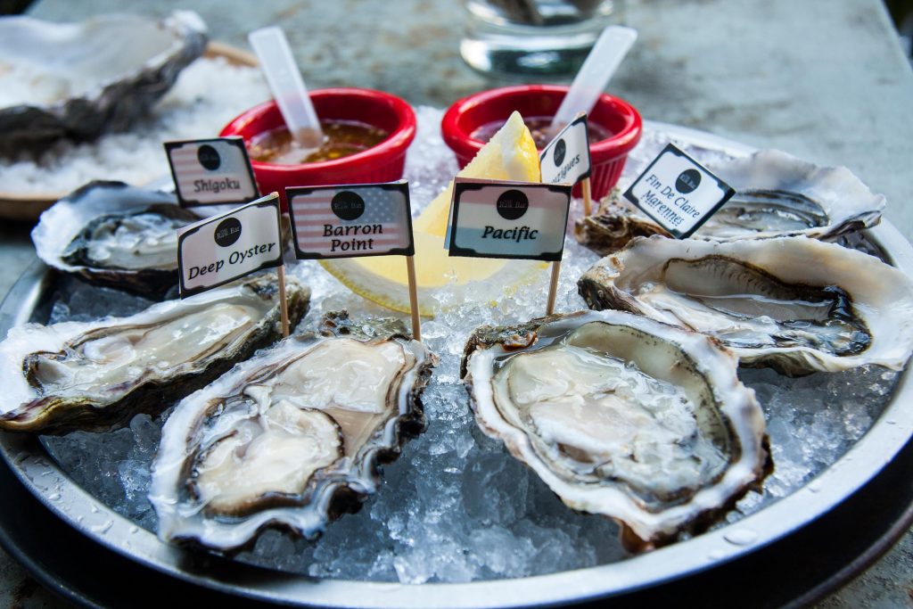 เมนูเด่นของร้านที่ขาดไม่ได้คือหอยนางรมสด (Oysters) ที่นำเข้าจากประเทศฝรั่งเศส, สหรัฐอเมริกา, ไอร์แลนด์, ออสเตรเลีย และญี่ปุ่น ซึ่งมีให้เลือกถึง 16 สายพันธุ์ด้วยกัน หอยนางรมสดจะถูกจัดวางเป็นดิสเพลย์อยู่ตรงบริเวณบาร์ โดยลูกค้าสามารถเลือกสายพันธุ์ให้พนักงานแกะให้ทานกันแบบสดๆเสิร์ฟพร้อมเลมอน และน้ำจิ้มสูตรพิเศษของทางร้าน บอกเลยว่าถ้าเปิดฝาปุ้บเซลล์หอยตายแล้ว เชฟเราคัดทิ้งทันทีไม่มีเหลียวแล เพราะต้องการให้ลูกค้าได้ทานกับแบบสดๆ จริงๆ บังเอิญวันนี้ฝนตกหนัก Favforward เลยของแวะหลบฝนพักที่ร้านนี้ก่อน ถือโอกาสลองเมนูซิกเนเจอร์ทั้ง 6 จานที่คออาหารทะเลห้ามพลาดจริงๆ