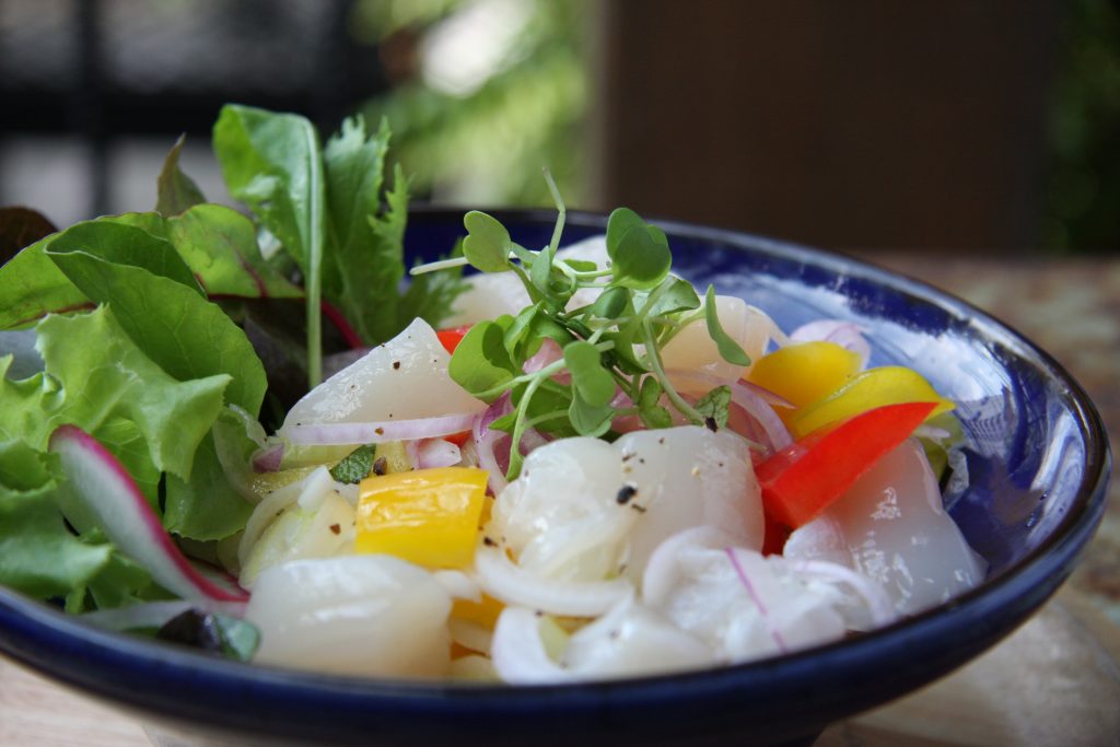 จานนี้ไม่ต้องพิธีรีตองมาก ให้เราได้เข้าถึงความสดของหอยนางรมแบบเน้นๆ กับหอยนางรมกลุ่มหวานกรอบ กลุ่มนี้น่าจะถูกปากหลายคนอยู่เหมือนกัน รสชาติกลมกล่อมกำลังดีบีบเลมอนใส่ลงไปนิด จิ้มน้ำจิ้มซีฟู้ดอีกหน่อยแล้วสูดเข้าไปเต็มๆ คำ ความเปรี้ยวของเลมอนผสมความหวานวันของหอย ได้รสพอดีๆ ไม่มากไม่น้อยเกินไป