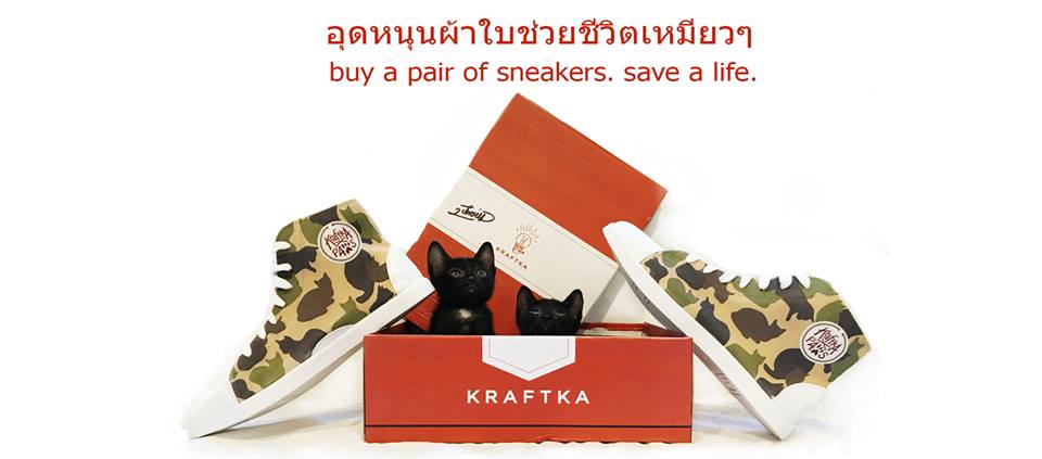 โดยส่วนหนึ่งของรายได้จากการขายรองเท้าทุกคู่ จะนำไปช่วยเหลือแมวจรจัดข้างทางที่ต้องการความช่วยเหลือ