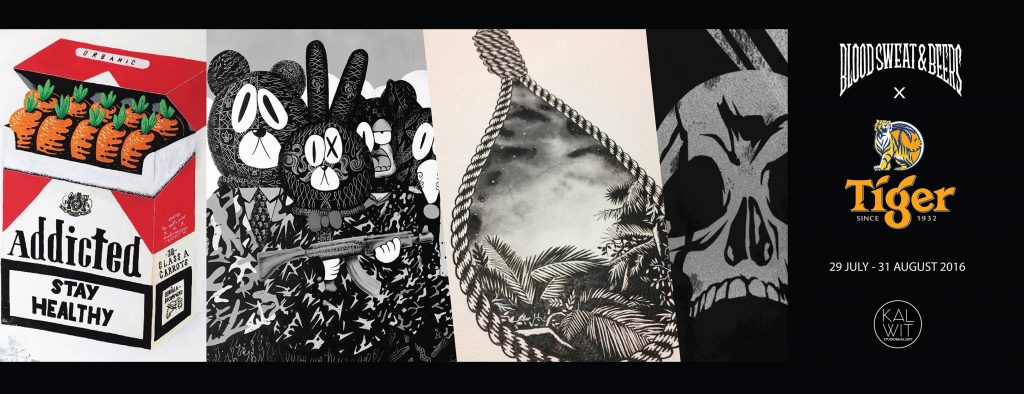 นิทรรศการ “BLOOD SWEAT & BEERS” เป็นนิทรรศการที่ถ่ายทอดมุมมองจาก7ศิลปินที่มีต่อขนบธรรมเนียม การเติมเต็มความปรารถนาในแบบฉบับของคนไทยด้วยความสุขชั่วขณะ ออกมาเป็นงานศิลปะในหลากหลายมุมมองให้ผู้ชมได้หยุดวิเคราะห์ถึงความเป็นมา และสิ่งที่จะยังคงดำเนินต่อไปในสังคมของเรา