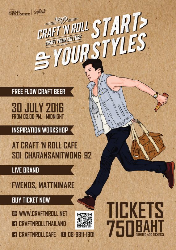 DETAIL: ราคาบัตร 750 บาท ดูรายละเอียดเพิ่มเติมได้ที่ http://craftnroll.net/2016/07/06/craft-n-roll-start-up-your-styles/