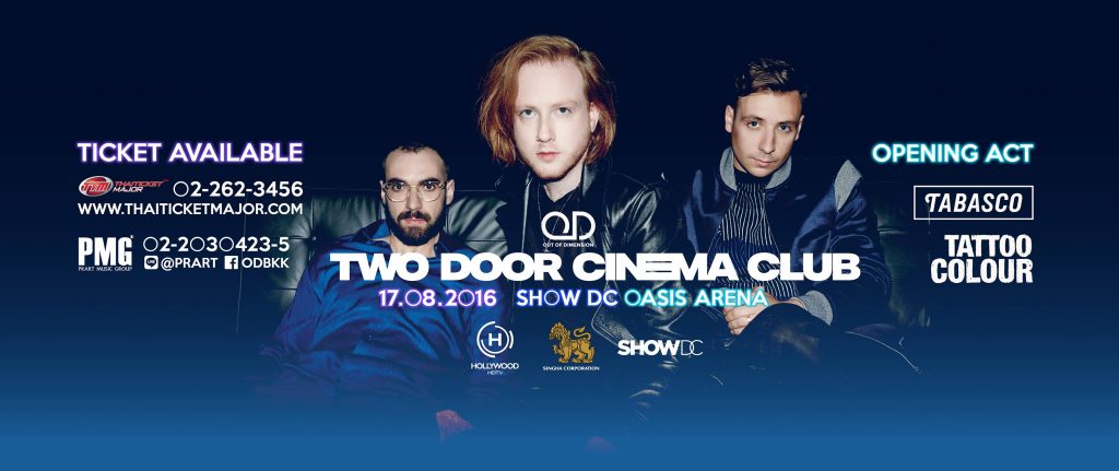 อยากดูทูดอร์ไม่ต้องรอถึงปีหน้า 17 สิงหาคม นี้ OD จัดให้! มาร่วมต้อนรับ Two Door Cinema Club วงจากไอร์แลนด์เหนือที่น่าจับตาที่สุด พร้อมชมการแสดงของวงไทยน่าจับใจ Tattoo Colour และ Tabasco สนุกกันในบรรยากาศแบบกันเอง บอกเลยคืนนี้มียาว