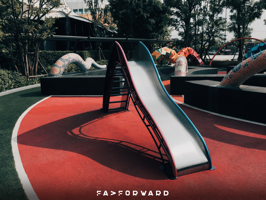 เป็นสนามเด็กเล่นกลางแจ้งสีสันสดใส เหมาะแก่การพาเด็กๆมานั่งเล่น หรือจะถ่ายรูปกันเท่ๆก็ได้ครับ