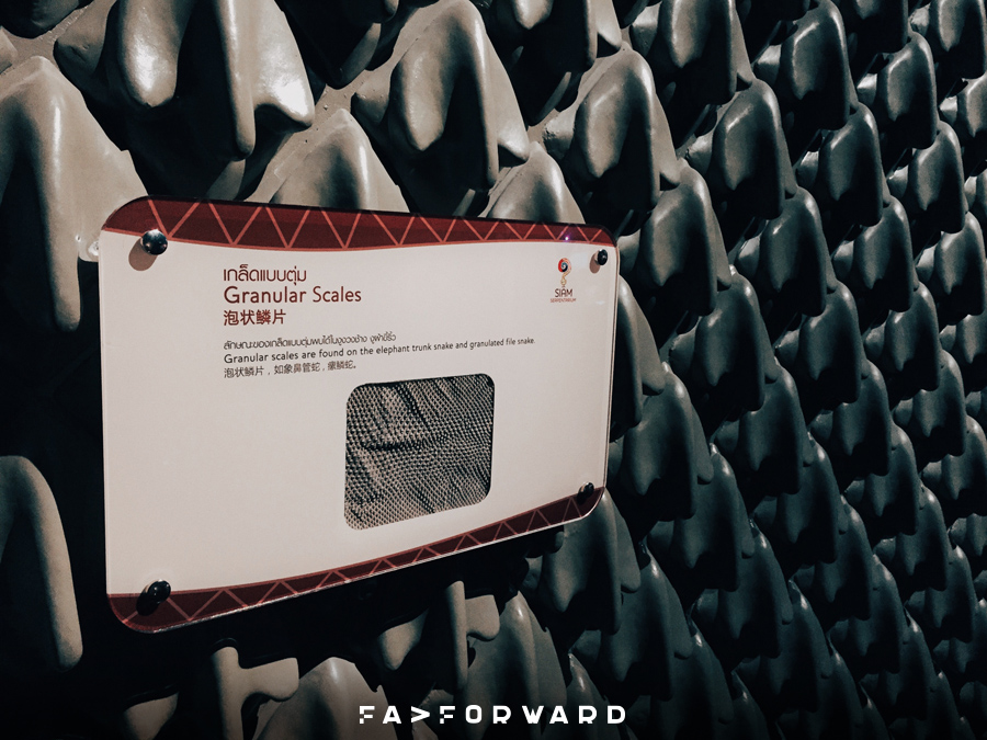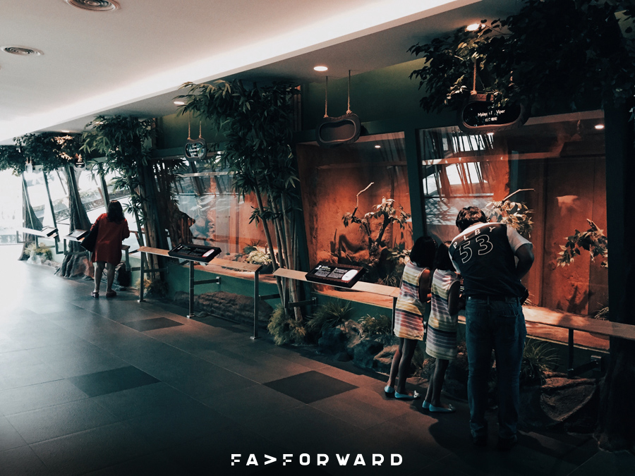 เป็นส่วนจัดแสดงงูจริงหลากหลายสายพันธุ์จากทั่วทุกมุมโลกกว่า 70 ชนิด ในตู้กระจกใส อาทิเช่น งูเห่าเผือก งูหลามทอง งูอนาคอนดา และ งูกรีนทีไพธอน รวมไปถึงการโชว์รีดพิษงูจากในห้องปฏิบัติการและความรู้เกี่ยวกับเซรุ่มต่างๆ ก็สามารถรับชมได้จากโซนนี้