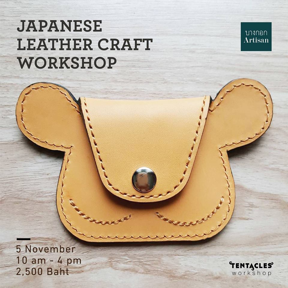 คนรักเครื่องหนัง ไม่ว่าจะเป็นคุณผู้หญิงหรือคุณผู้ชายต้องห้ามพลาดกับเวิร์คช็อป “Japanese leather craft” ที่จะสอนให้คุณสร้างเครื่องหนังแบบญี่ปุ่น โดย Shishou ชาวญี่ปุ่นผู้เชี่ยวชาญทางด้านการทำเครื่องหนังด้วยมือจะเป็นผู้สอนด้วยตนเอง พร้อมกับเรียนรู้ถึงเทคนิคพื้นฐานที่จำเป็นในการสร้างชิ้นงานคุณภาพสูง ตั้งแต่เรื่องเล็กๆ อย่างการทากาว ไปจนถึงการเก็บงานและการทาสีขอบ การเย็บชิ้นงานด้วยมือ ผ่านการสร้างสรรค์ coin case ในแบบญี่ปุ่น รวมทั้งการเรียนรู้ตั้งแต่ขั้นแรกในการทำความรู้จักกับงานเครื่องหนัง หรือจะเป็นการเรียนรู้ทักษะใหม่ๆ เพิ่มเติมเพื่อชิ้นงานที่มีคุณภาพสูงขึ้นจากที่คุณเคยทำก็ตาม และอาจจะเป็นบันไดขั้นแรกให้คุณก้าวไปสู่ช่างผลิตเครื่องหนังในอนาคต ราคาท่านละ 2,500 บาท