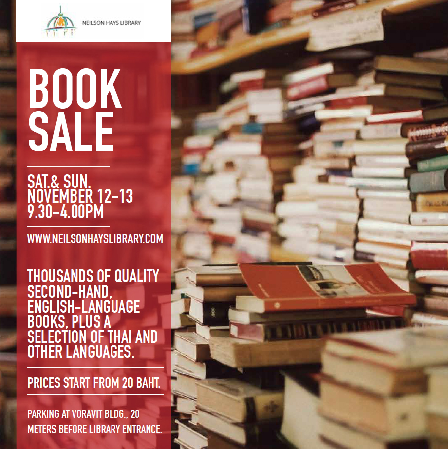 หนอนหนังสือตัวยงเชิญทางนี้ กับงานดีๆ ที่คุณจะใช้เวลาอยู่ได้ทั้งวัน Book Sale เพื่อการกุศลที่ ห้องสมุด Neilson Hays รวบรวมหนังสือมือสองหายากหลากหลายประเภท ตั้งแต่นวนิยาย วรรณกรรม ไกด์บุ๊ค ประวัติศาสตร์ เป็นต้น ซึ่งส่วนใหญ่เป็นหนังสือต่างประเทศ ลดกระหน่ำอย่างเต็มที่ ในราคาเริ่มต้นที่ 20 บาท ที่สำคัญห้องสมุดแห่งนี้ยังสวยงามมาก