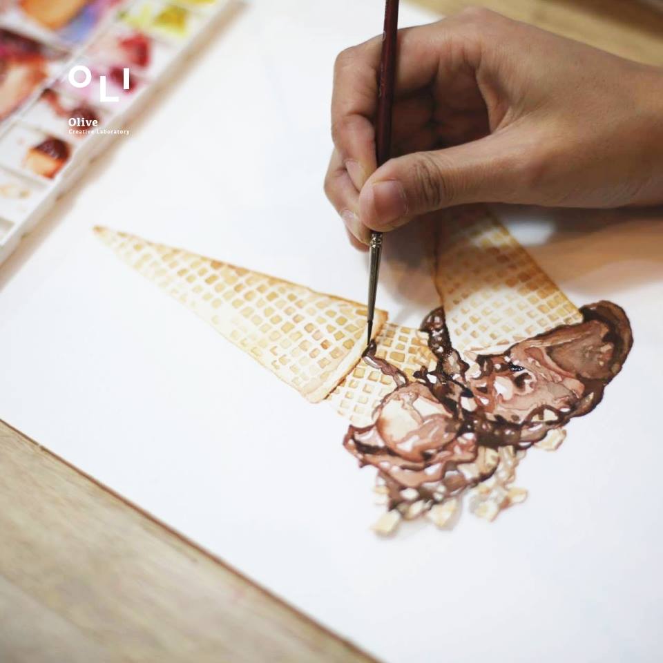 เป็นอีกหนึ่งเวิร์คช็อปที่ได้รับความนิยมเรื่อยมากับคลาส “วาดภาพระบายสีน้ำในธีมอาหารและเบเกอร์รี่” (Watercolour Food Stuff) ที่ให้เราได้เพลิดเพลินกับสีน้ำและกลิ่นของขนมที่ยั่วน้ำลาย พร้อมสร้างสรรค์ผลงานตื่นตาตื่นใจได้เมื่อหมดวัน เรียนรู้ตั้งแต่การร่างภาพให้สวยงามไปจนถึงเทคนิคการวาดภาพอาหาร พื้นฐานการใช้สีน้ำและเลือกใช้อุปกรณ์ เรียนจบได้ภาพอาหารและเทคนิคติดตัวกลับไปวาดรูประบายสีสวยๆ ได้ไม่รู้จบ สอนโดยปุยไฝไดอารี่ ศิลปินอารมณ์ดีที่หลงรักอาหาร อาจารย์จากมหาวิทยาลัยคณะสถาปัตยกรรมศาสตร์ นักวาดภาพประกอบ หลากหลายผลงานการันตีในนิตยสารชื่อดัง แถมยังดึงพรสวรรค์คนเรียนออกมาได้เก่งสุดๆ ค่าเรียนคนละ 2,800 บาท (พร้อมอุปกรณ์เกรดสตูดิโออย่างดีครบมือให้ถือกลับไปฝึกต่อที่บ้านได้) รับจำนวนจำกัดเพียง 12 ที่นั่ง และผู้เรียนไม่จำเป็นต้องมีพื้นฐานก็สามารถเรียนได้