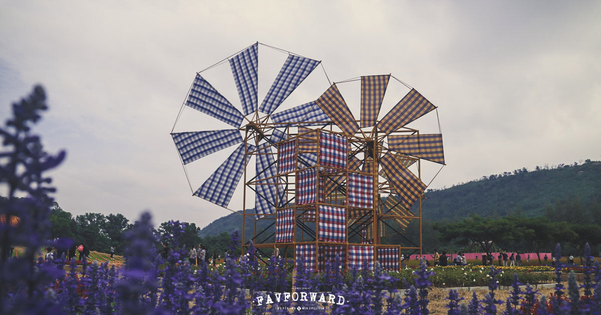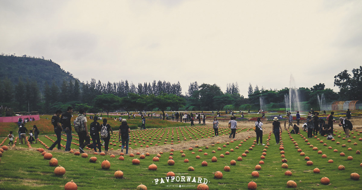 ถัดจากทุ่งคอสมอส รถนำชมจะพาเรามาจอดบริเวณลานฟักทองที่เปรียบเสมือนซิกเนเจอร์ของจิม ทอมป์สัน ฟาร์ม ในจุดนี้คุณทศพลอย่างเราๆก็ได้ดื่มดำกับบรรยากาศของทิวเขาที่ใหญ่โตมโหฬาร รวมไปถึงแปลงดอกไม้นานาชนิดหลากสีสัน ไม่ว่าจะเป็น กุหลาบ ดาวกระจาย ตัดกับสีสันสดใสของกังหันลมผ้าขาวม้าได้เป็นอย่างดี
