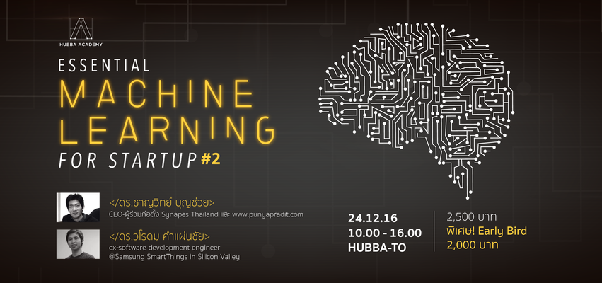 รู้ก่อนได้เปรียบ! ไม่ว่า Startup ที่คุณกำลังทำอยู่จะแก้ปัญหาอะไร Machine Learning จะช่วยให้คุณสามารถต่อยอดไอเดียของคุณสู่ Solution ที่ ‘แตกต่าง’ ได้ พร้อมช่วยให้ Startup ของคุณมีเสน่ห์ น่าค้นหา สำหรับผู้ใช้และนักลงทุน! มาเรียนรู้การประยุกต์เทคนิค Machine Learning ที่ใช้ได้จริงใน ‘Essential Machine Learning for Startup’ โดยทีมผู้เชี่ยวชาญที่พร้อมถ่ายทอดทุกขั้นตอนอย่างใกล้ชิด ให้คุณทำได้และเปลี่ยน Startup ให้ก้าวไปอีกขั้นได้จริง !