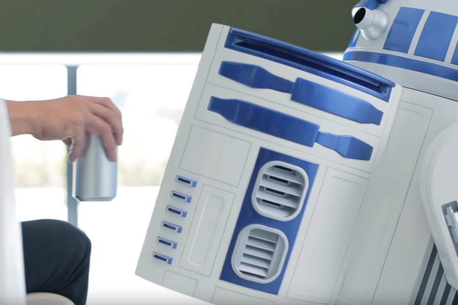 ด้วยกระแสของภาพยนตร์ฟอร์มยักษ์ที่ทั้งโลกตั้งตาคอยอย่าง Star Wars ยังคงร้อนแรงอย่างต่อเนื่อง ทางด้านผู้ผลิตเครื่องใช้ไฟฟ้าสัญชาติจีนรายใหญ่อย่าง Haier ก็ไม่น้อยหน้า ส่งตู้เย็นเคลื่อนที่ได้ในรูปลักษณ์ดีไซน์เหมือนเจ้าหุ่นยนต์ R2-D2 ขนาดเท่าจริงแบบในเรื่องมาเอาใจเหล่าสาวกเป็นที่เรียบร้อยในชื่อ “R2-D2 MOVING REFRIGERATOR”