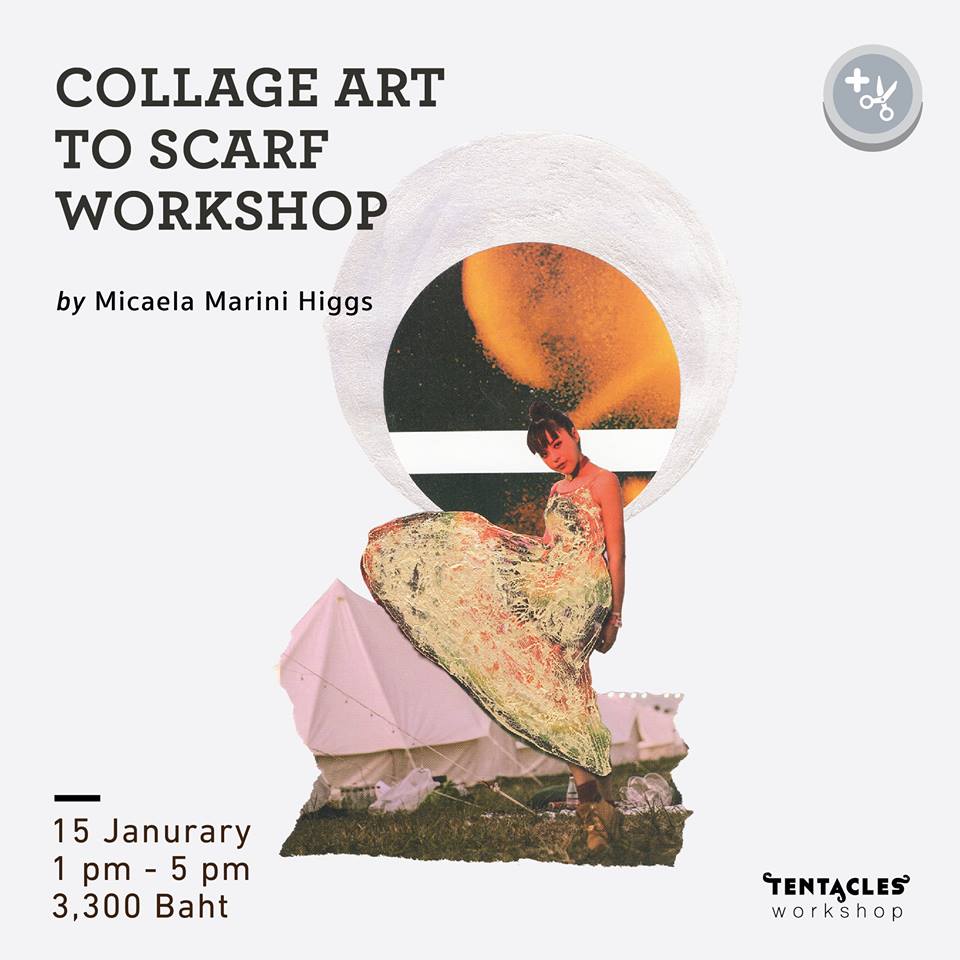 หากคุณเป็นชายหนุ่มที่หลงใหลงานด้านแฟชั่น ต้องไม่พลาดกับคลาส “Collage Art to Scarf Workshop” ที่จะมาเพิ่มทักษะการ ตัด แปะ แล้ว บรึ้ม!! ก็กลายเป็นผ้าพันคอกับศิลปินคอลลาจคนสวย Micaela Marini Higgs พร้อมกับแนะนำให้ทุกคนรู้จัก Collage Art ศิลปะของการตัดแปะ การหยิบจับความกระจัดกระจายมารวมกันเพื่อสร้างความหมายใหม่พร้อมสีสันลวดลายที่น่าสนใจ และงานของทุกท่านจะนำไปพิมพ์เป็นผ้าพันคอที่มีลายไม่เหมือนใคร ทั้งนี้ผ้าพันคอจะได้ 1 อาทิตย์ หลังจากเวิร์คช็อปและทางเทนทาเคิลจะจัดส่งให้หรือมารับด้วยตัวเอง ค่าเรียน 3,300 บาท (รวมอุปกรณ์และค่าจัดส่ง)
