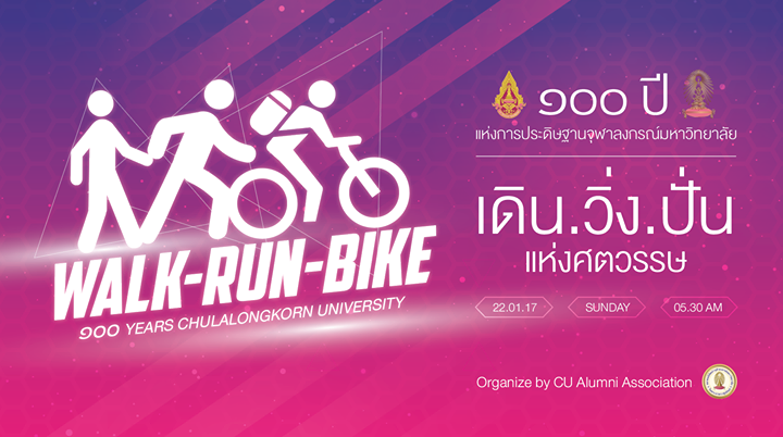 เดิน.วิ่ง.ปั่น ๑๐๐ ปี จุฬาฯ … เพื่อสานสัมพันธ์ระหว่างนิสิตเก่า+ปัจจุบัน และ บุคคลทั่วไป และ เพื่อเฉลิมฉลอง 100 ปี การสถาปนา จุฬาลงกรณ์มหาวิทยาลัย