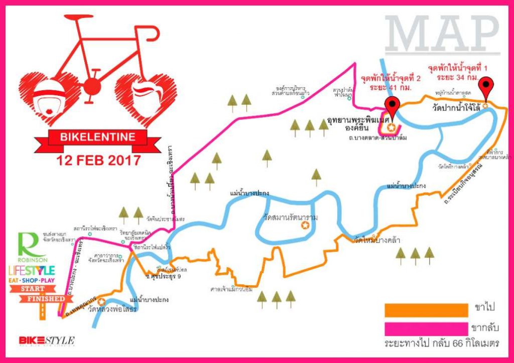 โรบินสันไลฟ์สไตล์ ฉะเชิงเทรา นิตยสารBikeSTYLE ภาครัฐและภาคส่วนต่างๆ ร่วมจัดทริปปั่นจักรยานในวันแห่งความรัก สำหรับท่านที่มีใจรักการปั่น หรือคู่รักนักปั่น ตระเวนล่อง ท่องไปในถิ่นเมืองแห่งมหาเทพ จังหวัดฉะเชิงเทรา จากจุดเริ่มต้นที่ โรบินสันไลฟ์สไตล์ ฉะเชิงเทรา ปั่นชมบรรยากาศของจังหวัดฉะเชิงเทรา ไปยังอุทยานพระพิฆเนศ องค์ยืนที่ใหญ่ที่สุดในโลก ร่วมทำกิจกรรม ไหว้ขอพร ขอโชคลาภ และความสำเร็จของคู่รัก