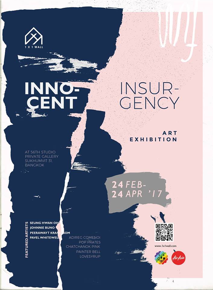 นิทรรศการ INNOCENT INSURGENCY ไม่ต้องการนำเสนอบทสรุปของคำถามว่า “ศิลปะคือเรื่องสำหรับทุกคน” หรือไม่ ในทางกลับกัน เราเลือกหยิบเอาทัศนคติและมุมมองที่คนมีต่อศิลปะ ทั้งสองขั้ว มาผ่าชำแหละออก ผ่านศิลปินสองกลุ่ม ที่ทำงานแตกต่างกันสุดขั้ว แต่กลับมีจุดร่วมบางอย่าง ด้วยเทคนิค มุมมอง ที่บ้างก็บิดเบี้ยวพิสดาร บ้างก็บริสุทธิ์ราวกับมันถูกสร้างโดยเด็กอนุบาล ซึ่งผิดแผกไปจากความเข้าใจ ในงานศิลปะทั่วๆไปผ่านงานกราฟฟิก ภาพถ่าย ภาพวาดประกอบ ซึ่งเราเชื่อว่าจะทำให้เห็นมุมมองใหม่ๆ กับคำว่าศิลปะได้อย่างแน่นอน