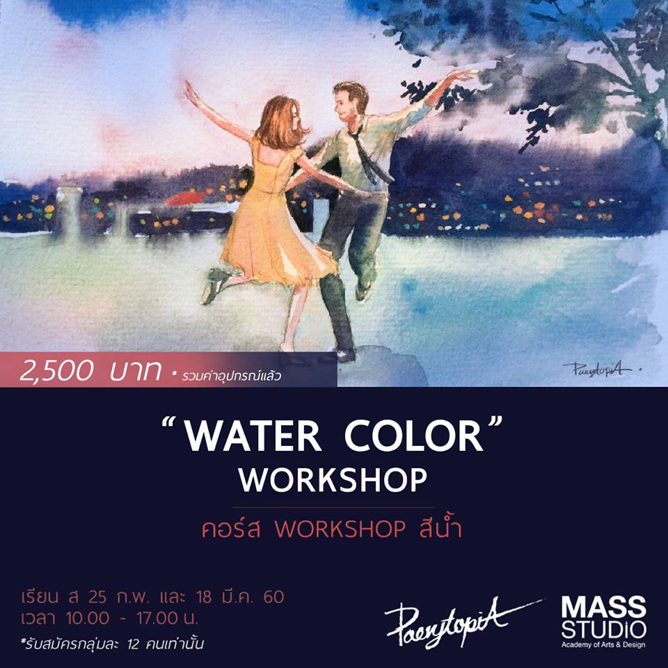 อีกหนึ่งคลาสของคนรักงานศิลปะ ” Watercolor Workshop” โดยคลาสนี้เป็นเวิร์คช็อปการวาดหน้าคน และสอนการลงสีน้ำในสไตล์ของ Paerytopia พร้อมทั้งยังได้เรียนรู้เทคนิคพิเศษต่างๆในการสร้างผลงานตั้งแต่เริ่มต้นจนเสร็จสมบูรณ์ โดยที่ผู้เรียนไม่จำเป็นต้องมีพื้นฐาน สอนโดย Paerytopia’Art work ค่าเรียน 2,500 บาท แถมฟรี! อุปกรณ์สีน้ำWinsor / จานสี / พู่กัน / กระดาษสีน้ำ รับจำนวนจำกัดเพียง 12 ที่นั่งเท่านั้น