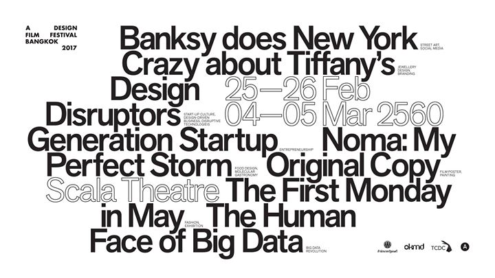 TCDC ร่วมกับบริษัทแอนโนนิมัส สิงคโปร์ (Anonymous Singapore) ขอเชิญทุกท่านเข้าร่วมเทศกาลภาพยนตร์เฉพาะด้านการออกแบบ A Design Film Festival Bangkok 2017 ที่จะพาคุณไปเจาะลึกเบื้องหลังการทำงานของนักออกแบบและตามติดกระแสที่น่าสนใจในแวดวงการออกแบบ ในภาพยนตร์สารคดีด้านการออกแบบจากนานาชาติ