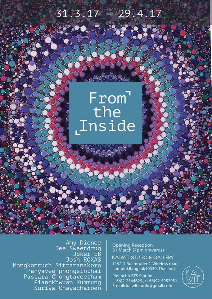 นิทรรศการ From the Inside จัดขึ้นโดย Kalwit Studio&Gallery ในรูปแบบของการตั้งโจทย์ให้กับกลุ่มศิลปิน 9 ท่านที่ถูกเลือกจากเทคนิคการสร้างสรรค์ผลงานที่แปลกใหม่และมีความเป็นเอกลักษณ์เฉพาะตน ว่าอะไรคือสิ่งที่สิ่งที่ตนอยากพูดมากที่สุดหากปราศจากข้อจำกัดใดๆจากปัจจัยภายนอก