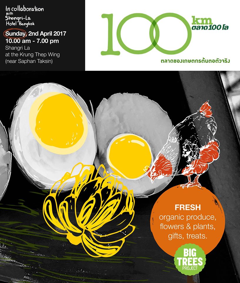 ทั้งหมดนี้คือแนวคิดของ “ตลาด 100 กิโล” โดยเราได้ทำการคัดเลือกเฉพาะสินค้าที่ผลิตและเพาะปลูกอยู่ภายในพื้นที่โดยรอบ ไม่เกิน 100 กิโลเมตรจากกรุงเทพฯ และจัดตั้งตลาดนัดในเมืองให้กับเกษตรกรเหล่านี้