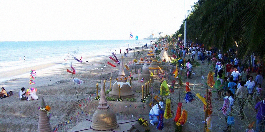 สำหรับสงกรานต์ในบางแสนนั้นจะเริ่มต้นขึ้นเมื่อวันที่ 16-17 เมษายนของทุกปี โดยที่นี่จะมีประเพณีที่เรียกว่า “ก่อพระทราย วันไหลบางแสน” ซึ่งเป็นการนำเอาทรายบริเวณริมชายหาดบางแสนมาก่อขึ้นเป็นลวดลายตามคอนเซ็ปต์ต่างๆเพื่อประกวดชิงเงินรางวัลกัน พร้อมทั้งมีเวทีการแสดง ดนตรีและเปิดให้เล่นน้ำตลอดถนนเรียบชายหาดบางแสนไปทั้งสายอีกด้วย
