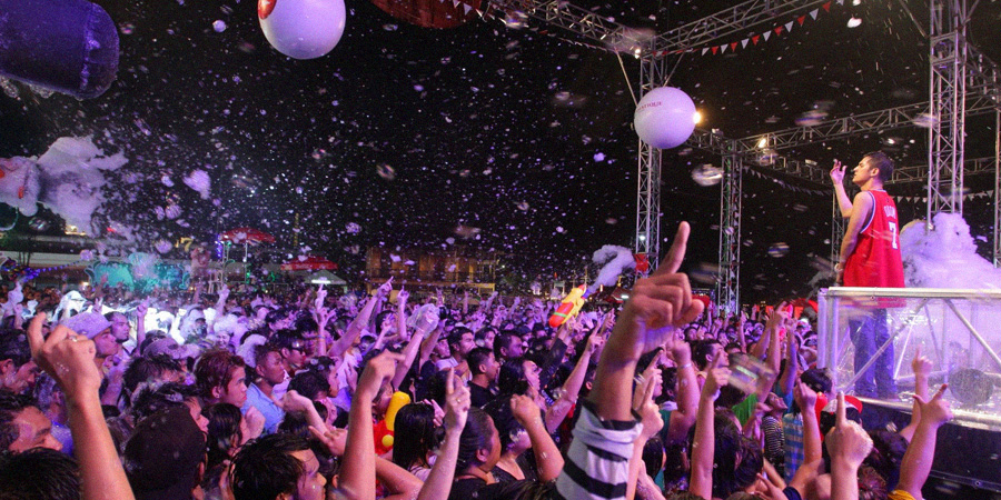 สงกรานต์ในอาร์ซีเอจะแตกต่างจากที่อื่นเล็กน้อยเนื่องจากต้องเสียค่าเข้าบรรดาโซนต่างๆ โดยแต่ละร้านจะมีโปรโมชั่นและรูปแบบที่แตกต่างกันออกไปเพื่อเอาใจนักท่องเที่ยวที่มาร่วมเฉลิมฉลองในวันสงกรานต์ ไม่ว่าจะเป็น ดนตรีสด ดีเจ EDM คัพเวอร์ รวมไปถึงพริตตี้สาวสวยที่จะคอยฉีดน้ำใส่ทุกคนที่เข้าไปในงาน