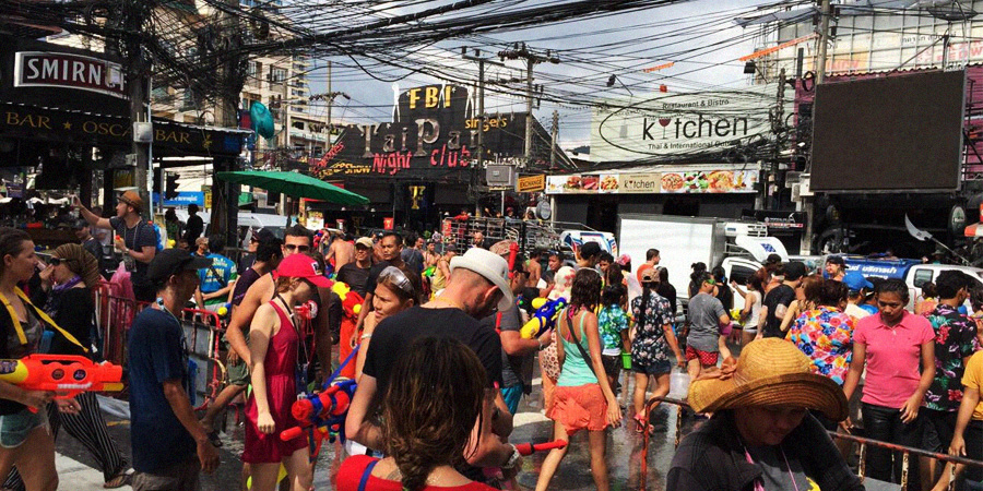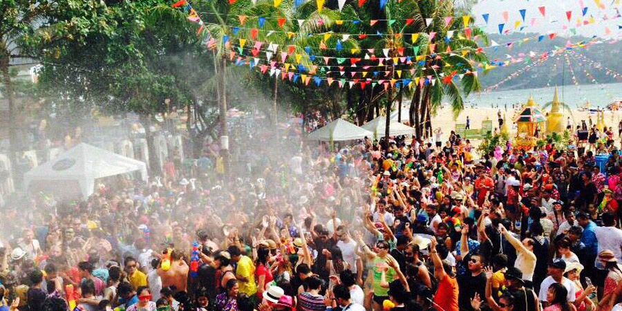 สงกรานต์ในจังหวัดภูเก็ตนั้นจะคึกคักเป็นอย่างยิ่งในบริเวณ ชายหาดป่าตอง และ ซอยบางลา ที่อยู่ติดกัน เนื่องจากบริเวณนั้นเต็มไปด้วยสถานที่ท่องเที่ยว ห้างสรรพสินค้า ร้านอาหาร และสถานบันเทิงที่ดึงดูดใจนักท่องเที่ยวให้มาเยี่ยมชมกันอย่างไม่ขาดสาย