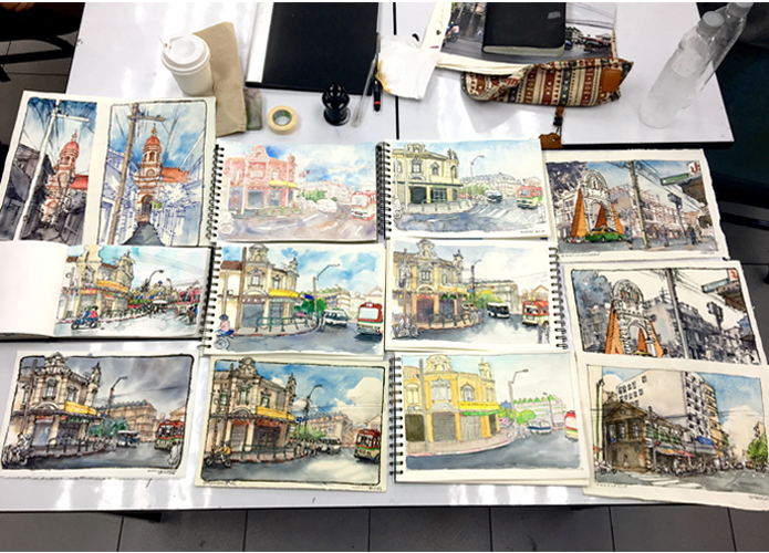 คนชอบวาดรูปต่งไม่พลาดกับคลาส “คนวาดเมือง 1 Basic Pen & Wash” คอร์สเรียนต่อเนื่อง 3 ครั้ง ครั้งละ 3 ชม. เรียนรู้ขั้นตอนการวาดภาพและลงสีอาคารบ้านเรือน, องค์ประกอบต่างๆ ด้วยเทคนิคเส้นและสีน้ำ