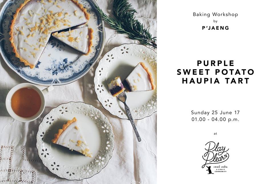 คลาส “Pupple Sweet Potato Haupia Tart Workshop” กับการเรียนรู้วิธีทำทาร์ตมันม่วง รสชาติดี สีสันสวย นำมันม่วงที่แสนมีประโยชน์มาบดจนเนื้อนวลเนียน ราดทับด้วย haupia หรือ ครีมคัสตาร์ดกะทิหวานเบาๆ ในแป้งทาร์ตแบบหวาน อบหอมด้วยเนยชั้นดีและอัลมอนด์ป่น แล้วคุณจะรักทาร์ตมันม่วงไปเลย