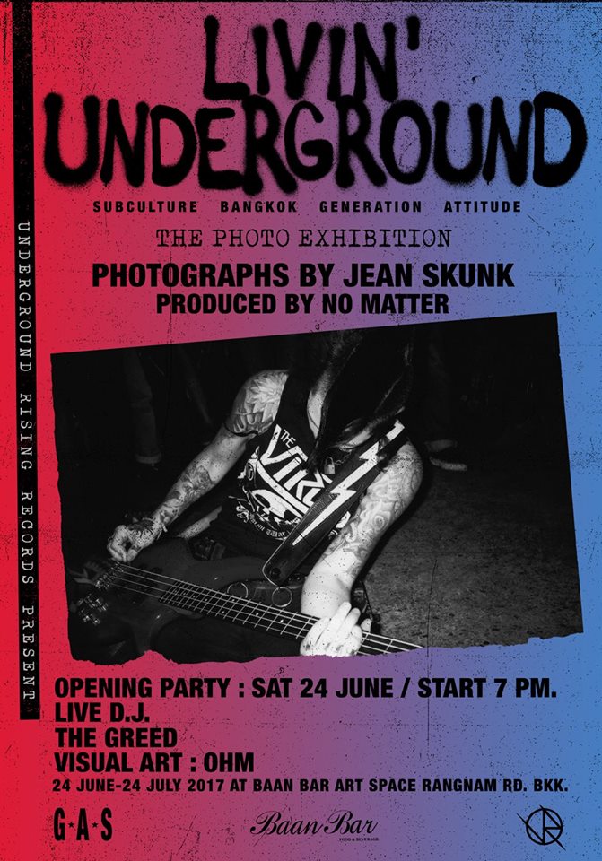 งานนิทรรศการ แสดงผลงานภาพถ่าย โดย Jean Skunk ภายใต้การกำกับ เรียบเรียง และนำเสนอ โดย No Matter ได้รวบรวมผู้คนที่รักในศิลปะและดนตรี เพื่อมาร่วมสร้างสีสันภายในงานครั้ง ที่ร้าน Baan Bar พร้อมด้วย ผู้ให้ความบรรเทิง
