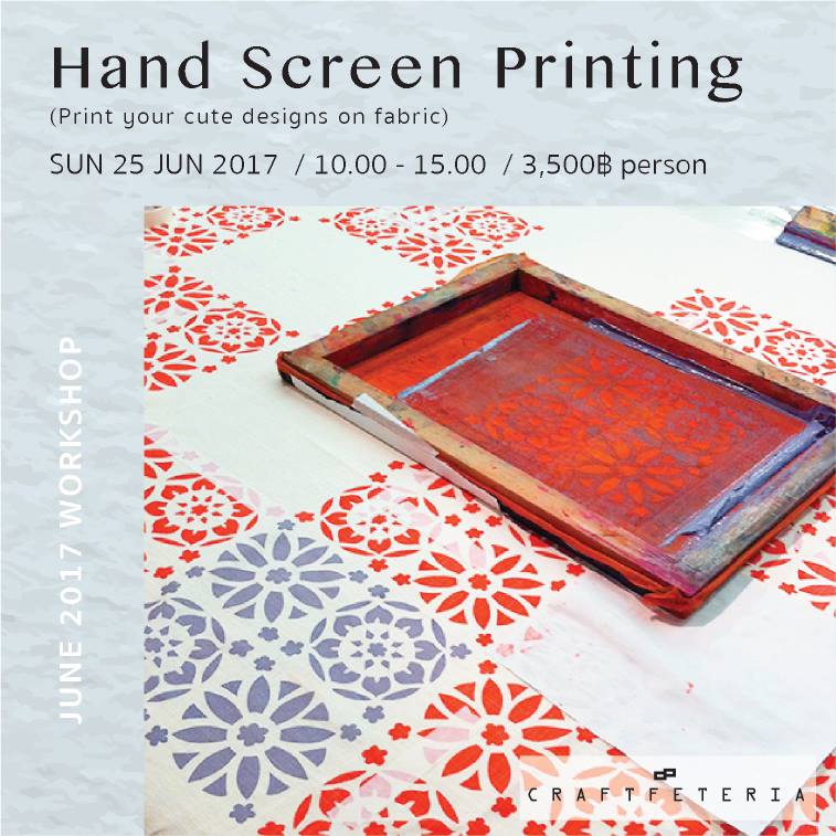 คลาส “สกรีนกันมันมือ” (Hand screen printing workshop) กับการเผยเคล็ดลับทำลวดลายลงผ้าด้วยเทคนิค Silk screen ที่ฟังดูเหมือนจะเป็นงานระดับอุตสาหกรรม แต่ความจริงแล้วคุณสามารถทำเองได้ที่บ้าน เรียนรู้เทคนิคการทำบล็อกสกรีนจากลวดลายที่คุณสามารถสร้างสรรค์ได้เอง ไปจนถึงวิธีการพิมพ์ลงบนเนื้อผ้า พร้อมรับกระเป๋าผ้า ผ้าโพก และ เสื้อยืดที่พิมพ์ด้วยตัวคุณเองกลับบ้านไปสวมใส่ และใช้งานตามอัธยาศัย นำพางานอุตสาหกรรมสู่ลานซักล้างหลังบ้าน โดยครูโตโต้ ผู้ร่วมบุกเบิก “Zeem screen” ร้านสกรีนเสื้อมืออาชีพที่มีผลงานคุณภาพส่งออกไปขายต่างประเทศมาแล้วมากมาย