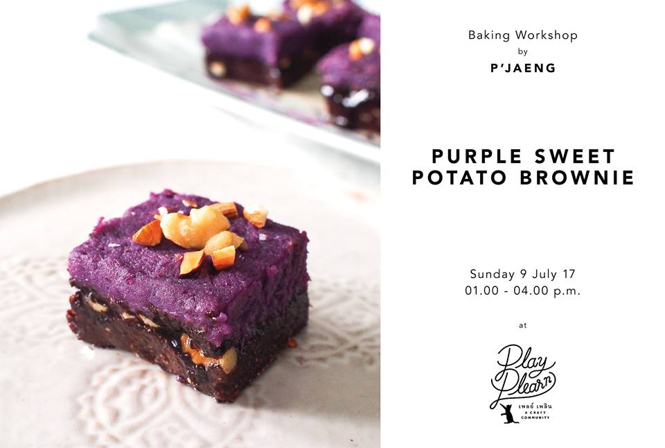 สายทำขนมต้องไม่พลาดกับคลาสสอนทำฟัดจ์บราวนี่เนื้อแน่นและหนึบ เข้มข้นด้วยช็อกโกแลตชั้นดี อบในเวลาที่เหมาะสม ฟรอสติ้งด้วยมันเทศญี่ปุ่นสีม่วงบดจนเนียนนุ่ม ในรสชาติละมุนกำลังดี เมื่อกินพร้อมกัน จะได้รสชาติหวานมัน และสัมผัสกรุบกรอบของถั่วให้เคี้ยวเพลิน ตัดเป็นชิ้นพอดีคำพร้อมเสิร์ฟ
