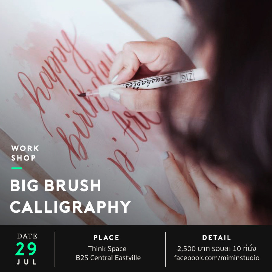 คลาส Big Brush calligraphy workshop มาเรียนเขียน Calligraphy แล้ว ยังได้ทำการ์ดสวยๆ ซ่อนไว้ในกล่องไม้ เป็นของขวัญคนพิเศษ พร้อมทำสายคาดกล่องสีหวานด้วยเทคนิค blending รับรองว่าเปิดออกมาจะมีแต่ความประทับใจ ไม่มีพื้นฐานก็มาเรียนได้