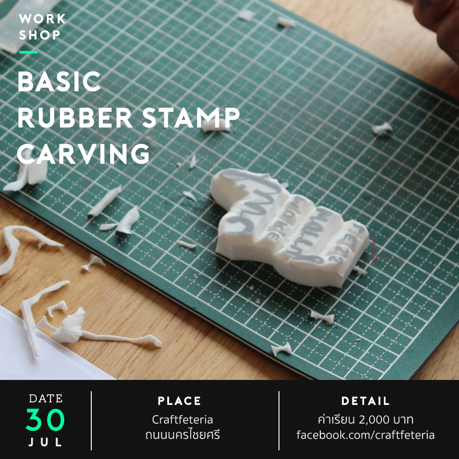 คลาสแกะยางลบเป็นตรายาง (Basic rubber stamp carving) กิจกรรมทำมือที่ให้ความเพลิดเพลินและพาความสงบมาสู่จิตใจมากที่สุด ได้ใช้ทักษะหลากหลายด้านที่สุด