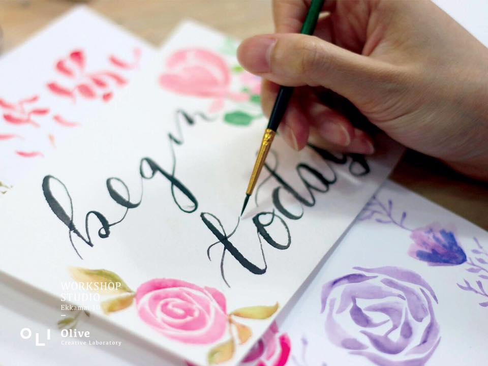 WORKSHOP: เขียน Calligraphy สีน้ำด้วยเส้นสายแสนอ่อนหวาน #ครั้งที่3