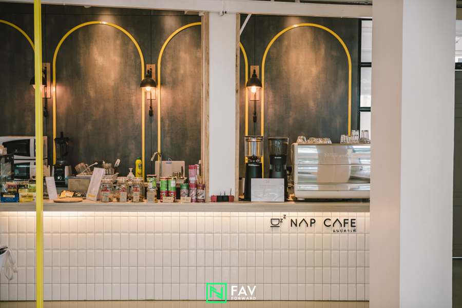 แต่หัวใจสำคัญของ NapLab คือ Sleep Lab ซึ่งเป็นทั้งพื้นที่ทำงานแบบนั่งพื้นในบรรยากาศไม่เคร่งเครียดจริงจัง โดย Personal Cave แคปซูลสีเหลืองสดใสที่มีชื่อเรียกเล่นๆ ว่า cave เป็นจุดขายสำคัญ “มีช่วงหนึ่งที่เราอ่านรีเสิร์ช เขาว่าการทำงานถ้าเราได้แอบงีบ เขาเรียกว่า power nap สัก 20-30 นาที มันทำให้เราเหมือนชาร์จพลังกลับเข้าไปใหม่ได้ ก็เลยกลายเป็นคอนเซ็ปต์หนึ่งที่เราน่าจะเอามาใช้ตรงนี้ด้วย ซึ่งก็เป็นที่มาของพื้นที่ที่ดีไซเนอร์เรียกว่า cave ครับ” และเพราะเปิดพื้นที่ให้งีบหลับได้ ที่ NapLab จึงมาพร้อมบริการหมอนและผ้าห่มให้เรายืมใช้อีกด้วย