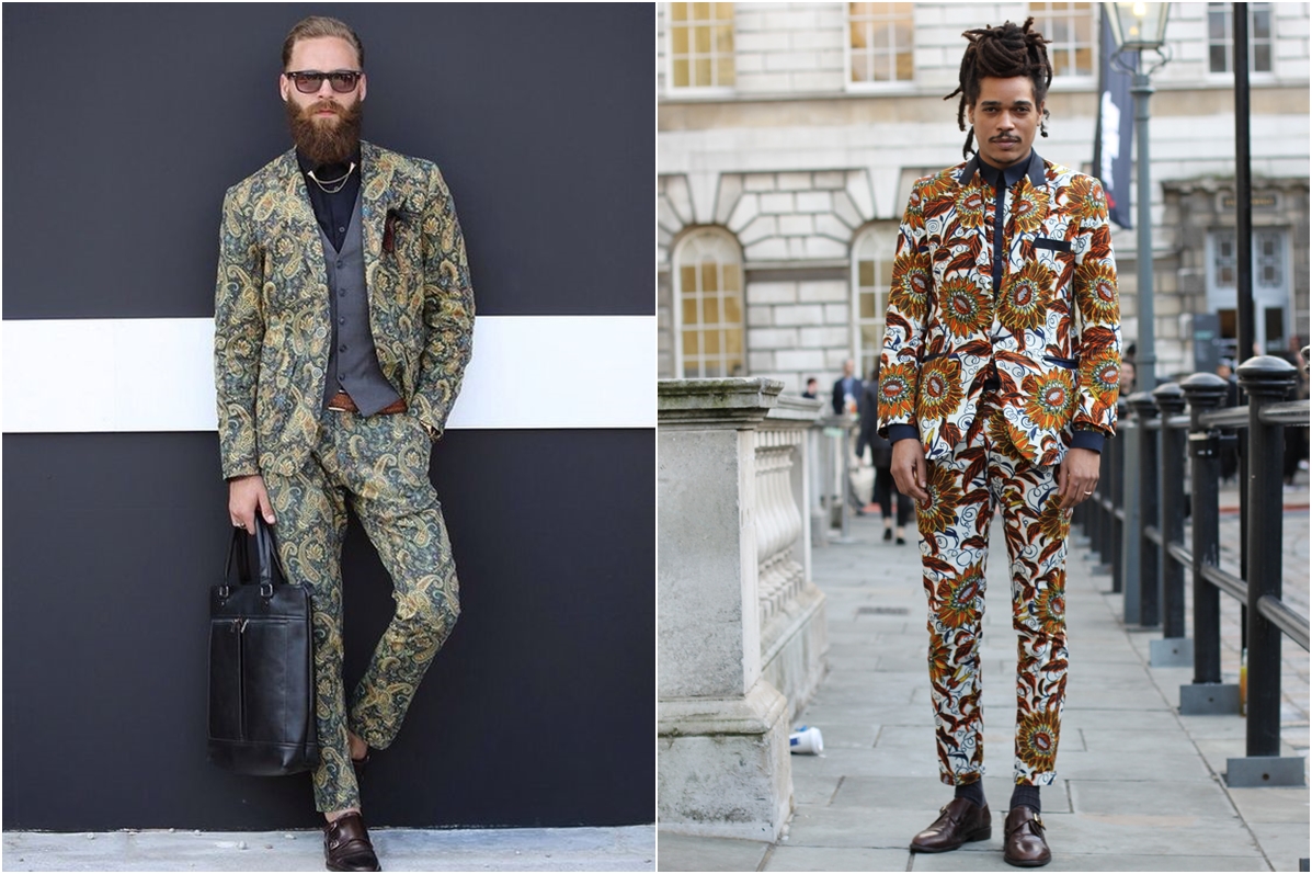 มองข้ามสูทแบบสีพื้นไปบ้างสำหรับหนุ่มๆ คนไหนที่เบื่อความจำเจในแบบเดิมๆ ลายพริ้นท์บนเสื้อสูทและกางเกงที่เข้าชุดกันจะสร้างความโดดเด่นให้กับผู้สวมใส่เป็นอย่างมาก เหมาะสำหรับหนุ่มๆ ที่มีความมั่นใจพอสมควร แมทช์ทั้งชุดกับรองเท้าหนังเท่ๆ สักคู่ก็พอ