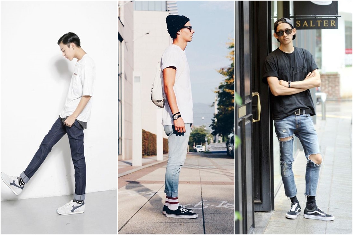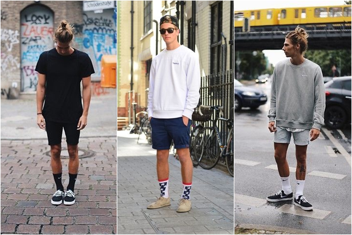 บ่อยครั้งที่เราจะเห็นหนุ่มๆ สายสตรีทสวมถุงเท้าข้อสูงกับกางเกงขาสั้น เนื่องจากจะสามารถโชว์ความเท่ของถุงเท้าได้แบบเต็มๆ แถมยังจะช่วยให้การแต่งตัวในวันนั้นไม่ดูชิลจนเกินไป จะใส่กับเสื้อยืดโอเวอร์ไซส์หรือเสื้อเชิ๊ตสักตัวก็เอาอยู่
