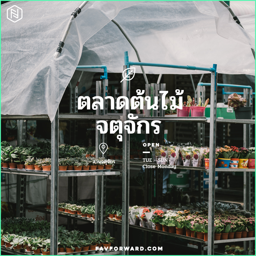 ตลาดต้นไม้จตุจักร เปิดทุกๆ วันอังคาร – พฤหัสบดี โดยเริ่มเปิดร้านกันตั้งแต่วันอังคารช่วงบ่ายๆ เป็นต้นไป ตลาดต้นไม้จตุจักร จะเน้นขาย ต้นไม้ อุปกรณ์ตกแต่งสวน ดิน กระถาง และ อุปกรณ์การเกษตร พ่อค้า แม่ค้าที่ขายต้นไม้ ส่วนมากก็จะเป็นชาวสวนมาเองทั้งนั้น มาจากทั่วทุกภาคทั่วไทย ขายทั้งปลีกและส่ง ในราคาที่ค่อนข้างถูก แม้แต่กระบองเพชรต้นน้อย – ใหญ่ หรือไม้อวบน้ำ ก็มีให้เลือกมากมาย ในราคาที่เป็นกันเองอีกด้วย ถ้าอยากปลูกตั้งแต่เป็นเบบี๋ ก็สามารถซื้อได้ในราคาเริ่มต้นที่ 25 บาท ไปจนถึงหลักร้อยที่เริ่มโตเต็มที่ จริงๆ แล้วราคาต้นไม้ที่นี่เริ่มต้นเพียง 10 บาทเท่านั้น และไม่ใช่ต้นไม้ขนาดเล็ก เพราะเงินเพียง 35 บาทก็ทำให้เราได้ต้นพุดศุภโชคขนาดสูงประมาณ 15 นิ้วติดไม้ติดมือกลับมาด้วย