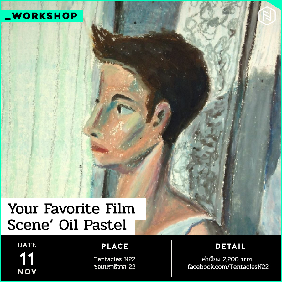 คลาส “Your Favorite Film Scene’ Oil Pastel Workshop with Jaruwat” ไปทำความรู้จักสีชอล์คน้ำมันกับคุณเตว-จารุวัฒน์ น้อมรับพร เจ้าของเพจ LoveSyrup คุณเตวจะมาแชร์เคล็ดลับการสร้างสรรค์ผลงาน เช่น การอ่านค่าน้ำหนักภาพอย่างง่ายด้วยสมาร์ทโฟน ที่ทำให้ทุกคนทำงานง่ายและรวดเร็ว นอกจากนี้ยังสอนพื้นฐานการลงสีและเทคนิคการใช้สีชอล์คน้ำมันในแบบต่างๆ ที่สำคัญทุกคนจะได้วาดภาพจากซีนในภาพยนต์ที่คุณชื่นชอบเป็นผลงานกลับบ้าน อย่าลืมเตรียมซีนที่คุณอยากวาด แล้วมาปลุกความสร้างสรรค์กัน