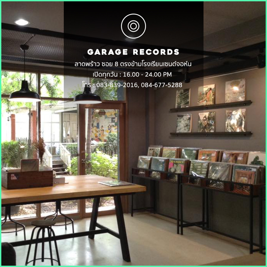 เดิมทีร้าน Garage Records เกิดขึ้นจากการขายผ่านอินสตาแกรมและเฟซบุ๊ก จากนั้นจึงเริ่มขยับขยายมามีพื้นที่ชั้นลอยเล็กๆ ของบาร์แห่งหนึ่งย่านลาดพร้าว ก่อนจะย้ายมาเปิดร้านเป็นของตัวเองในปัจจุบัน แม้ร้านจะมีแผ่นเสียงให้เลือกแค่ราว 500 แผ่น แต่ล้วนเป็นแผ่นปั๊มแรก (1st Pressed) และแผ่นหายากจากยุค 90s ผสมกับ 80s และ 2000s โดยเน้นแนวป๊อปร็อกและอัลเทอร์เนทีฟ ที่สำคัญยังรู้ใจนักคุ้ยแผ่นที่ส่วนใหญ่เป็นวัยทำงาน ด้วยการเปิดตั้งแต่ช่วงเย็นย่ำจนถึงเที่ยงคืนทุกวัน ถึงไปแล้วไม่ได้แผ่นถูกใจติดมือกลับบ้าน ก็ไปนั่งดื่ม ฟังเพลง และคุยกับเจ้าของร้านได้เพลินๆ ไม่ว่ากัน