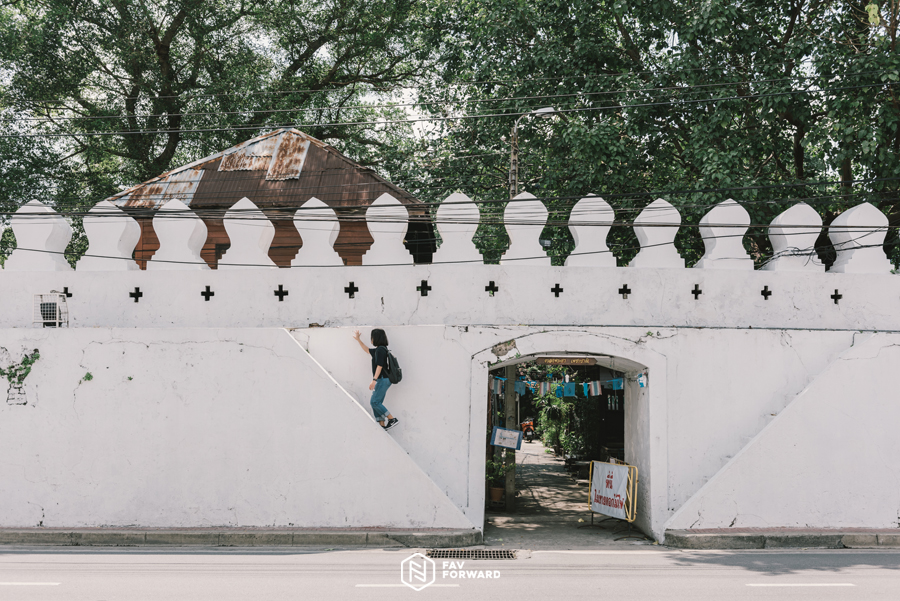 เมื่ออิ่มหน่ำกับมื้อเช้ากันแล้ว เราขอเดินย้อนเส้นทางเพื่อสำรวจ ‘ชุมชนป้อมมหากาฬ’ ชุมชนเก่าแก่ที่ตั้งเคียงกับวัดราชนัดดารามวรวิหาร โดยชุมชนแห่งนี้ซ่อนตัวอยู่หลังกำแพงและป้อมมหากาฬ
